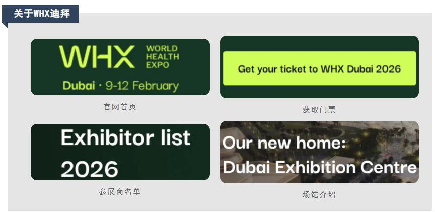 2026年2月,將有來(lái)自180多個(gè)國(guó)家、4800多個(gè)參展商、27萬(wàn)多名醫(yī)療專業(yè)人士齊聚迪拜,共同塑造行業(yè)。WHX迪拜作為全球最大國(guó)際醫(yī)療活動(dòng)網(wǎng)絡(luò)之一,以醫(yī)療器械與設(shè)備、影像與診斷等十大產(chǎn)品展區(qū)為載體,搭建全球醫(yī)療產(chǎn)業(yè)互聯(lián)互通的核心樞紐。